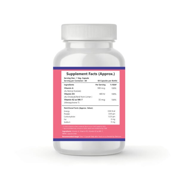 Nutrapark A.D.K. Capsules provide a scientifically balanced blend of Vitamin A, Vitamin D3, and Vitamin K2-7, designed to support bone metabolism, strengthen immunity, improve calcium absorption, and promote eye health. This synergistic formula ensures calcium is effectively absorbed and directed to bones for enhanced strength and density.